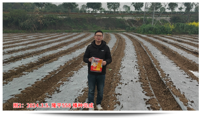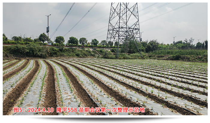 回想年前說要召開苗期會議的時候,大家都有點不知所措,因為沒有先例,客戶也并不看好苗期會議呈現(xiàn)的效果。決定了要做,那就全力以赴,第一個問題就是示范田的選點,要考慮播種時間、地塊條件、地塊面積、交通便捷、人員配合等,權(quán)衡各要素最終確定在樂山夾江找地。樂山夾江水源條件好有東風(fēng)堰灌溉,土質(zhì)肥沃常年種植蔬菜、藥材,地勢平坦面積規(guī)整更易找到幾畝連片地塊,播種時間較早能夠保證4月中旬苗子適合觀摩,種植戶經(jīng)驗豐富懂得控制密度和水肥管理。從年前初選溝通,到最后落實,由于交通、前茬、面積等因素,前后也溝通了6位種植戶、經(jīng)歷了3次換地,才最終在2月20日確定了地塊,并于3月5日完成播種。設(shè)計之初首先考慮的就是密度,該地塊密度有2種設(shè)計,一是寬窄行(雙株)的3200株/畝,二是等行距(單株)2600株/畝,同時保證外觀性狀和產(chǎn)量性狀都有較高的體現(xiàn)。其次是保證整田無雜草,苗齊苗壯,從播種短短一個月時間內(nèi)我去查看了4次。播種時已做好了地塊除草,確定好行距、株距,然后每窩3粒播種;第一次查看,及時整理薄膜的遮蓋,了解墑情、苗情,如出現(xiàn)整箱出苗不好,及時灌溉保苗;出苗整齊后,及時補(bǔ)苗肥,促進(jìn)長勢;苗期會議前,插牌、美化地塊,間苗,祛除弱苗,展現(xiàn)示范地的最佳狀態(tài)。田間管理實操工作繁重且枯燥,但當(dāng)看見客戶在地里笑著拍攝隆平558的情景,就讓我依舊相信每一份努力的背后,一定會有驚喜!